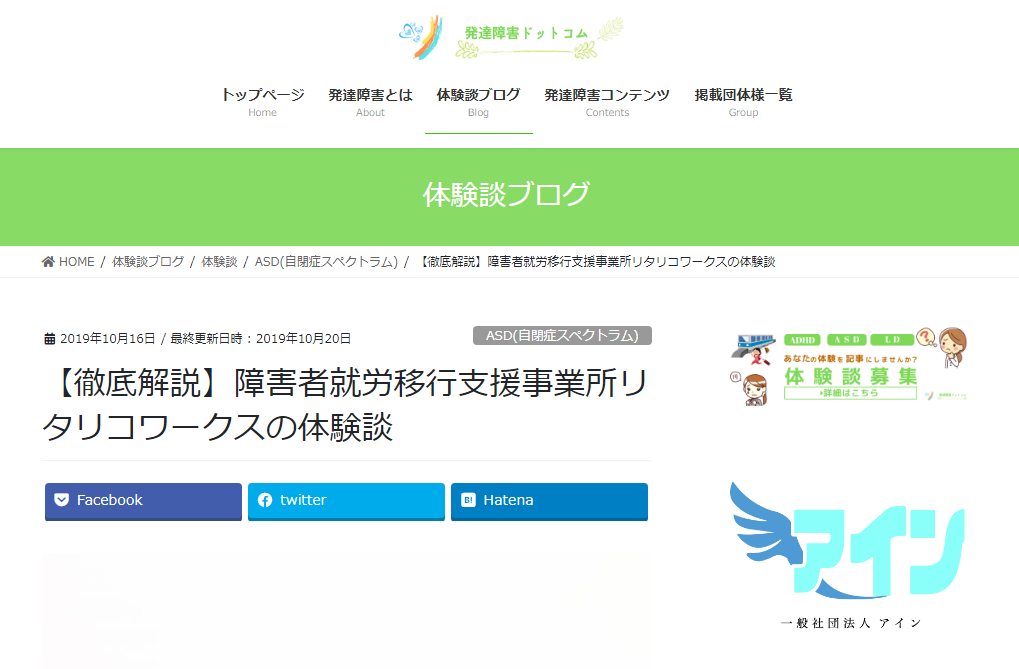 同じく発達障害ドットコムさんのインタビュー記事です。