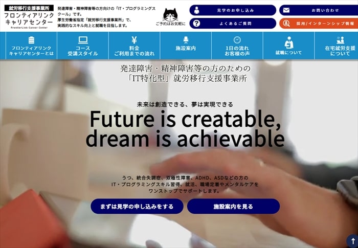 「ITスキルで障害者も自由な働き方を」がコンセプトの就労移行支援事業所です。