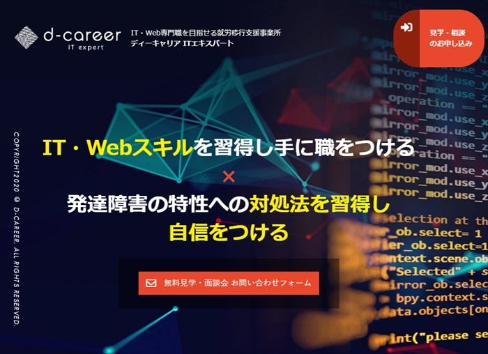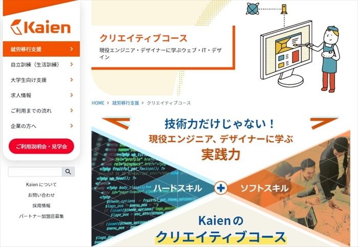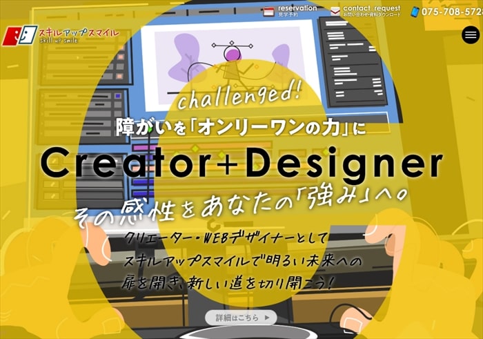 クリエイター、Webデザイナー、プログラマー、エンジニア、PCオペレーターを目指せるIT特化型就労移行支援事業所です。