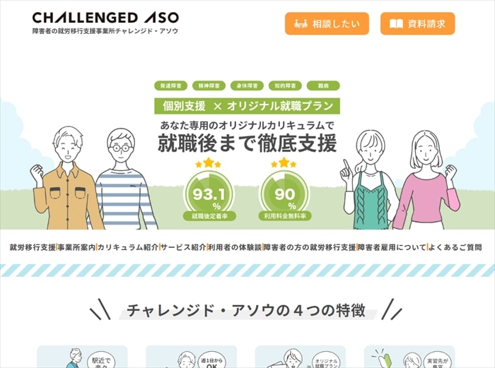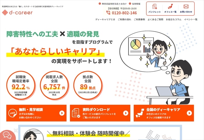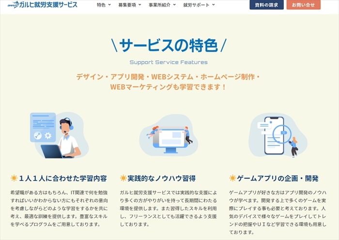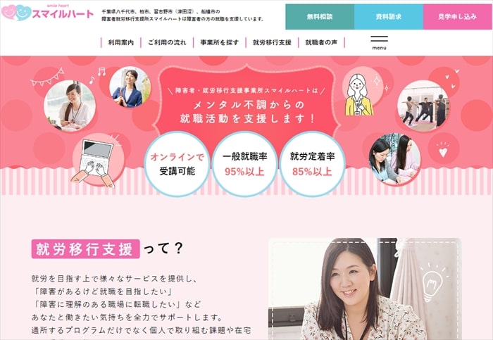 「各障害に最適な支援が受けられる」「就職/転職サービスのプロが支援」なども特徴です。