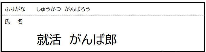 例:「フリガナ」と表記がある場合、「就活 がんば郎→シュウカツ ガンバロウ」となる。