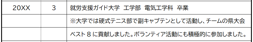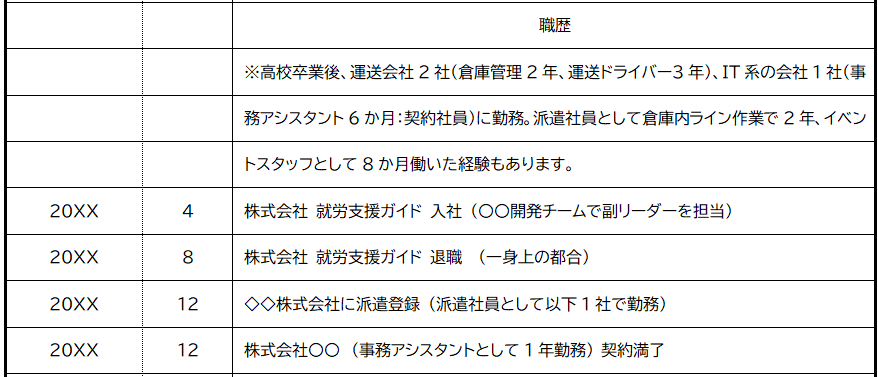 見本では先に紹介したクローバーナビの履歴書フォーマットを使っています。説明のため、見出しなど少し変えている部分もあります。