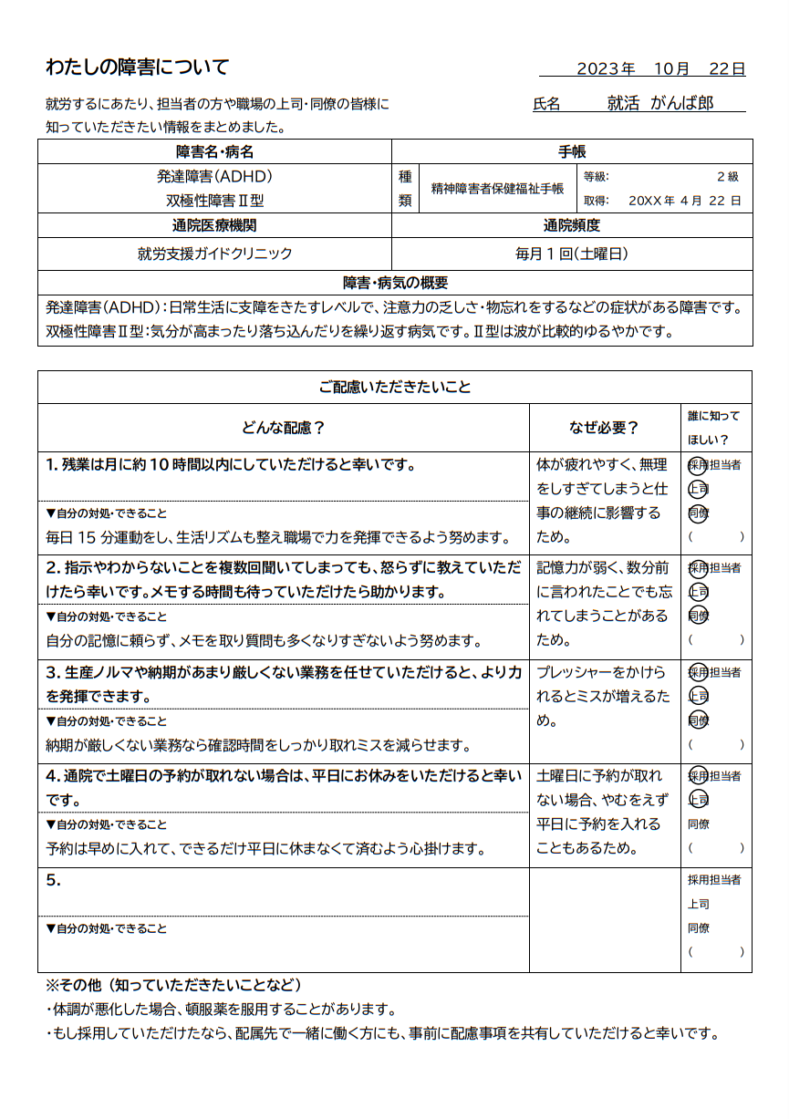 障害者雇用での「わたしの障害について(自分の取扱説明書/ナビゲーションブック)」の書き方・見本