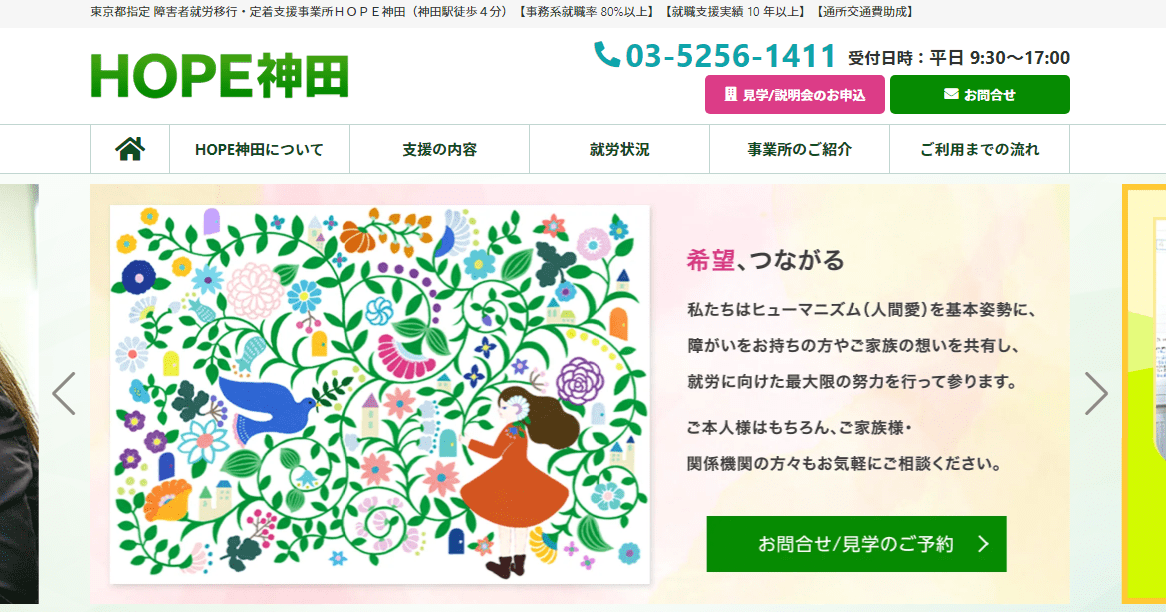 | 訓練例 | ビジネスマナー、PCデータ入力、事務・軽作業トレーニング、SST、就活講座 |