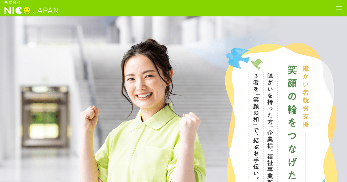 | 訓練例 | 簿記・パソコン・清掃・秘書検定・プログラミング・英語・農作業・軽作業・模擬面接・履歴書指導・面接同行・SST |